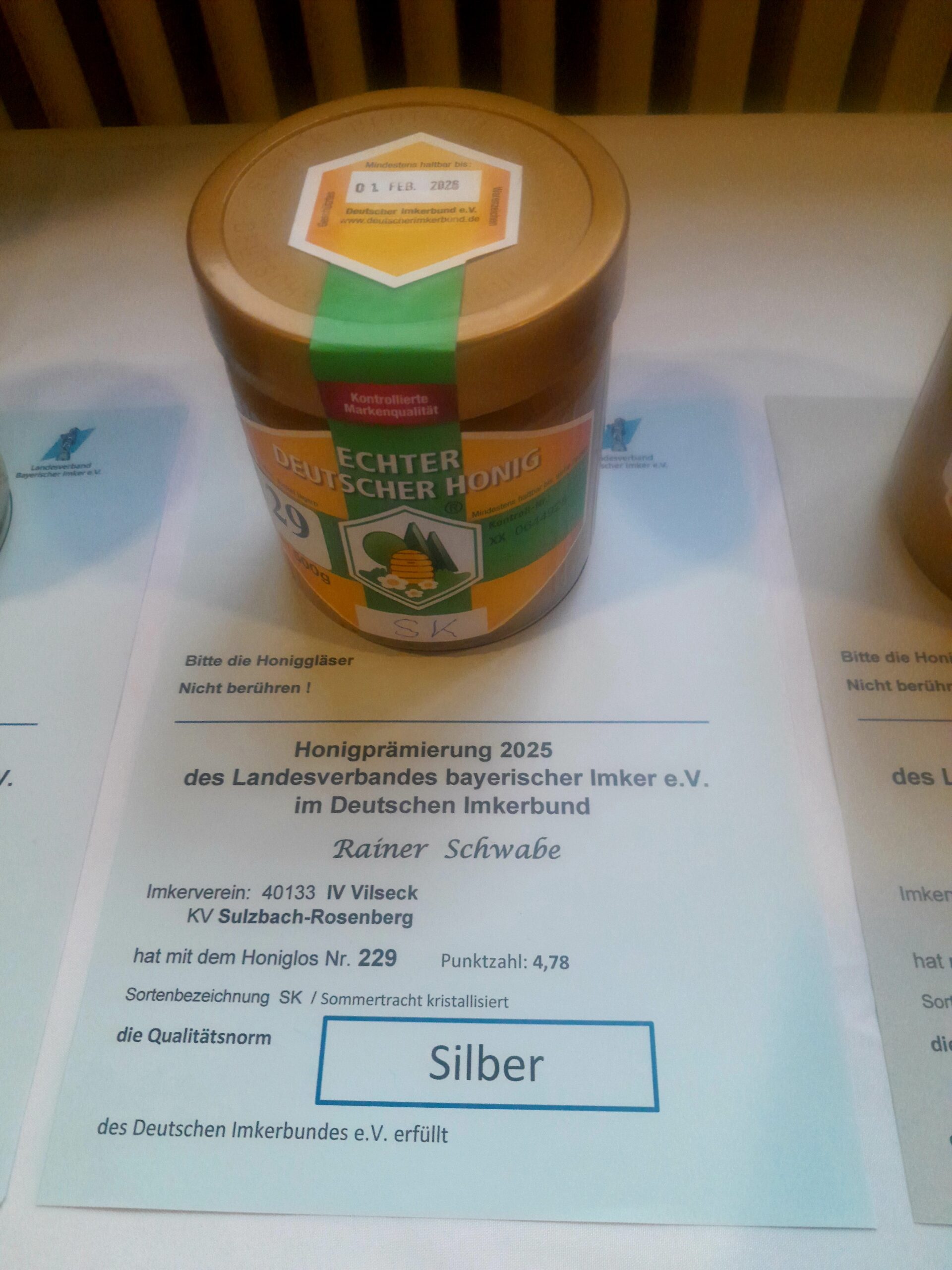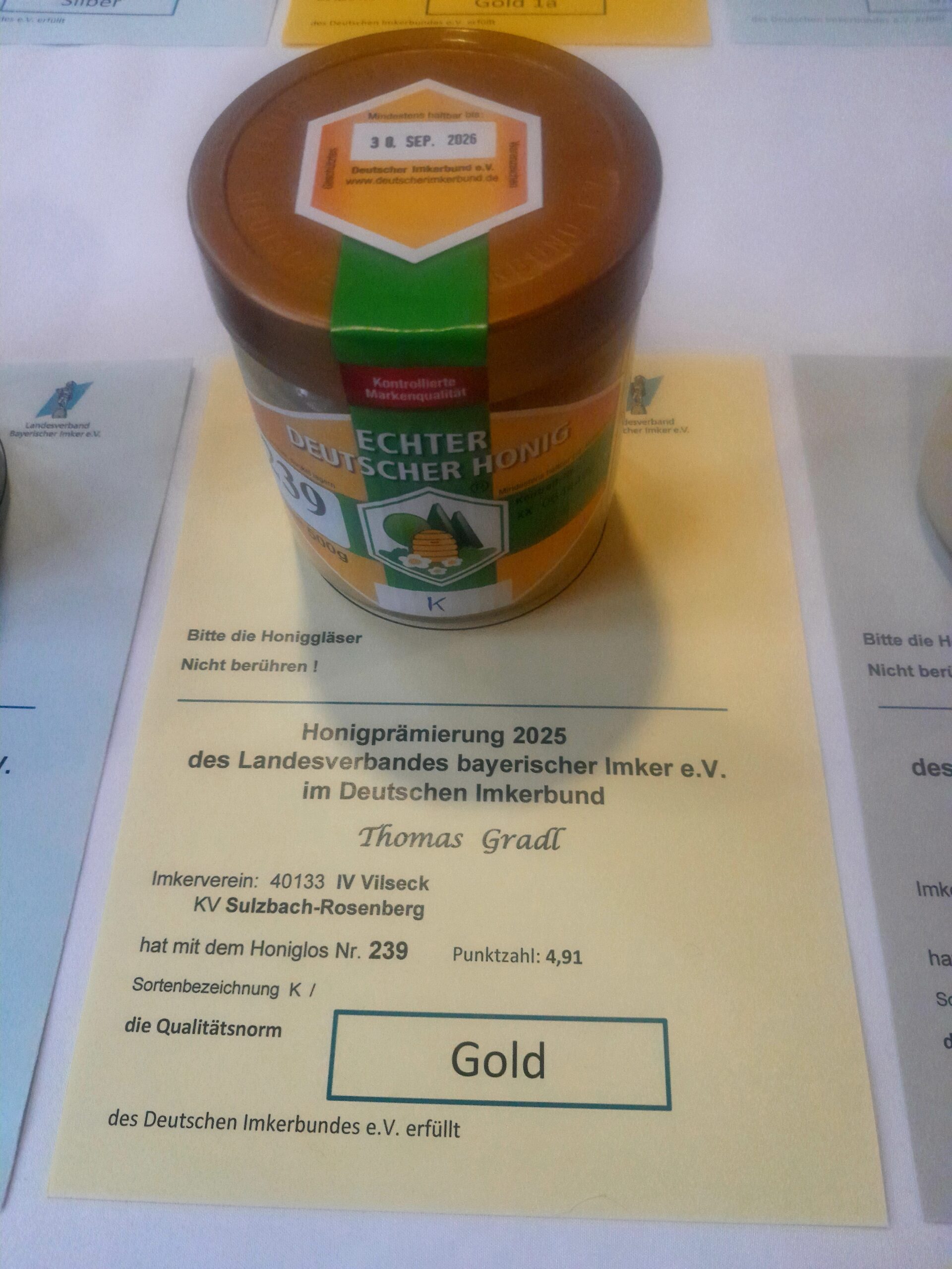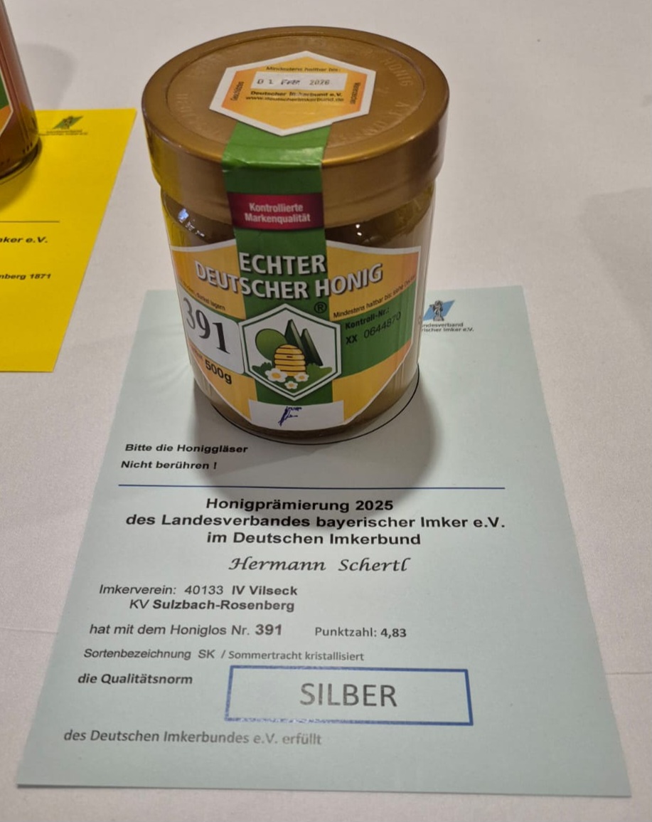 Am 2. November wurden die Ergebnisse der fast 400, nach den Kriterien des Deutschen Imkerbundes, geprüften Honige auf dem 11. Bayrischen Honigfest in Bischofsgrün bekannt gegeben. 3 unserer Imker haben wieder Honige eingeschickt und das Ergebnis kann sich sehen lassen.